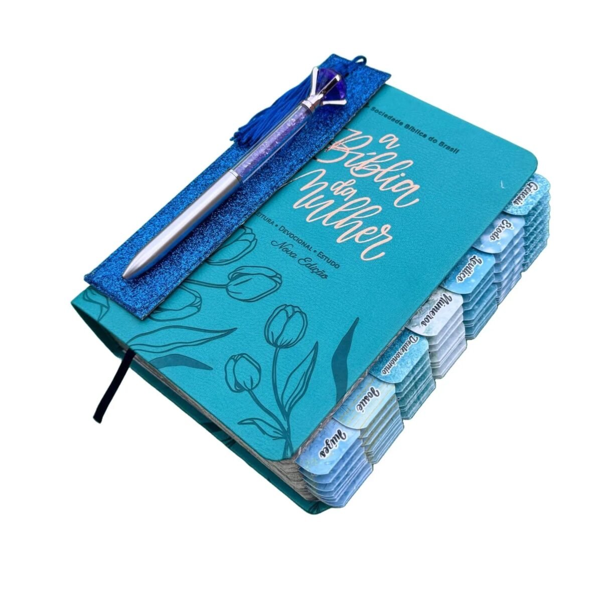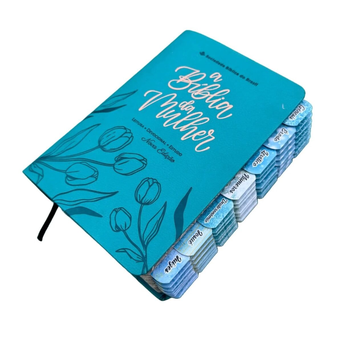 A Bíblia de Estudo da Mulher Tulipa Azul Turquesa SBB Com Abas Adesivas é uma ferramenta indispensável para todas as mulheres que desejam se aprofundar nos ensinamentos da Palavra de Deus. Com uma capa linda e delicada, na cor azul turquesa com detalhes em tulipas, essa Bíblia é perfeita para presentear ou para uso pessoal.