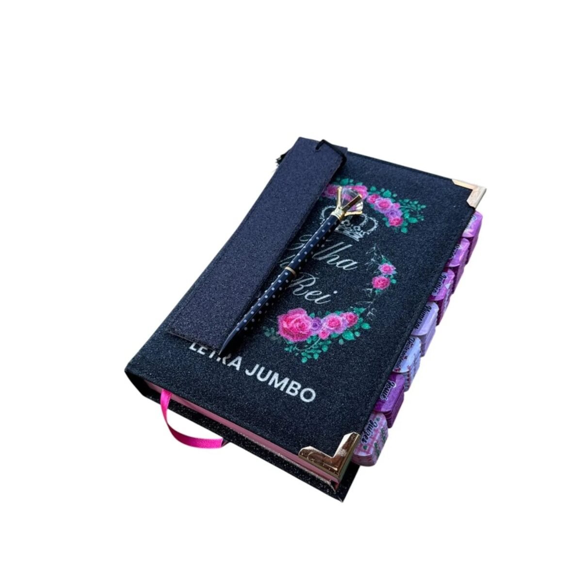 • Capa Preta com Glitter: Moderna, elegante e com acabamento brilhante que traz um toque feminino e sofisticado.