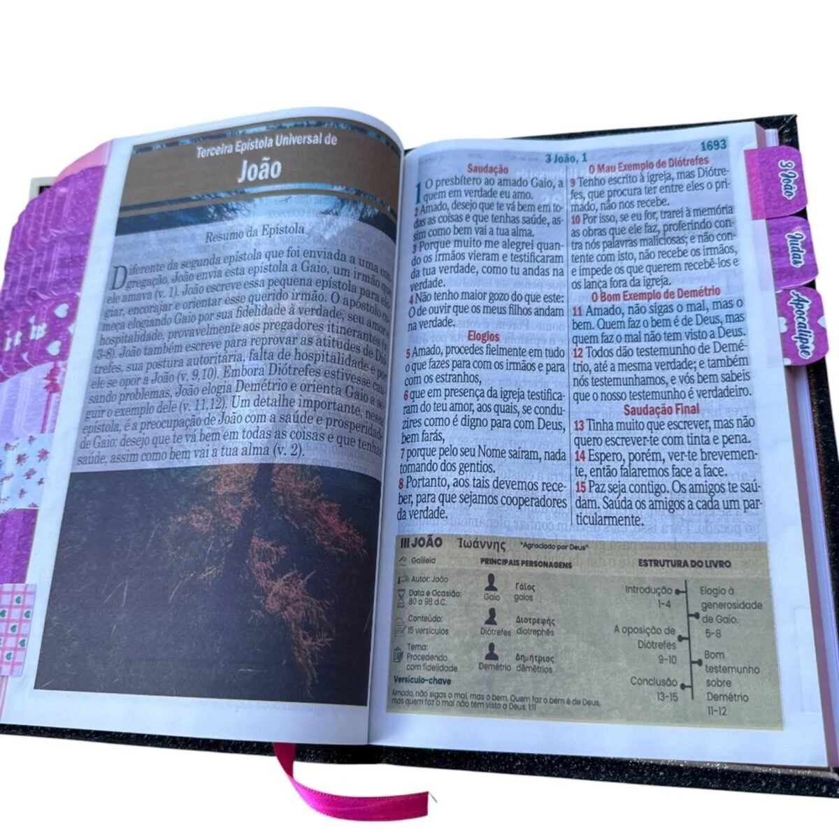 • Abas Colocadas: Facilitam o manuseio e a localização dos livros bíblicos.